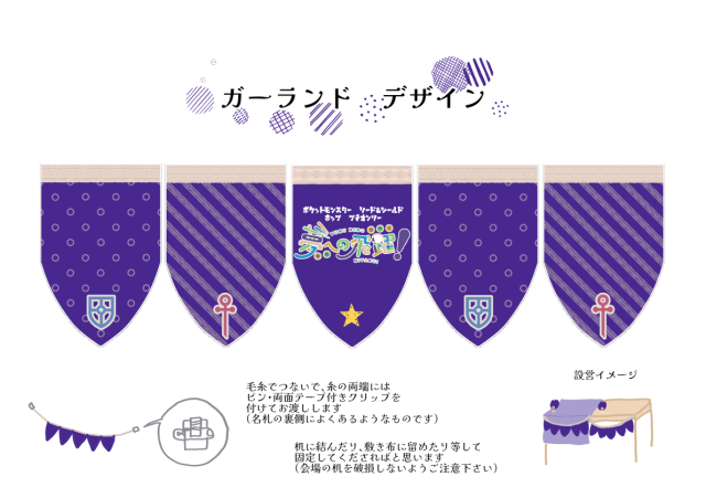 ●卓上POP&ガーランド配布サークル参加者様に、卓上を飾るポップとガーランドを配布いたします。使用は任意です。 お祭り感の演出、及び一般参加者さんへの目印になると思いますので、是非ご使用くださいませ。
