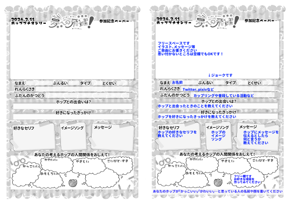 また普段ペーパーを出さない方やネタが思い付かない方、お祭りに乗ってくださる方向けに、ともだち帳風のペーパーテンプレートを配布します。もしよろしければご使用くださいませ!